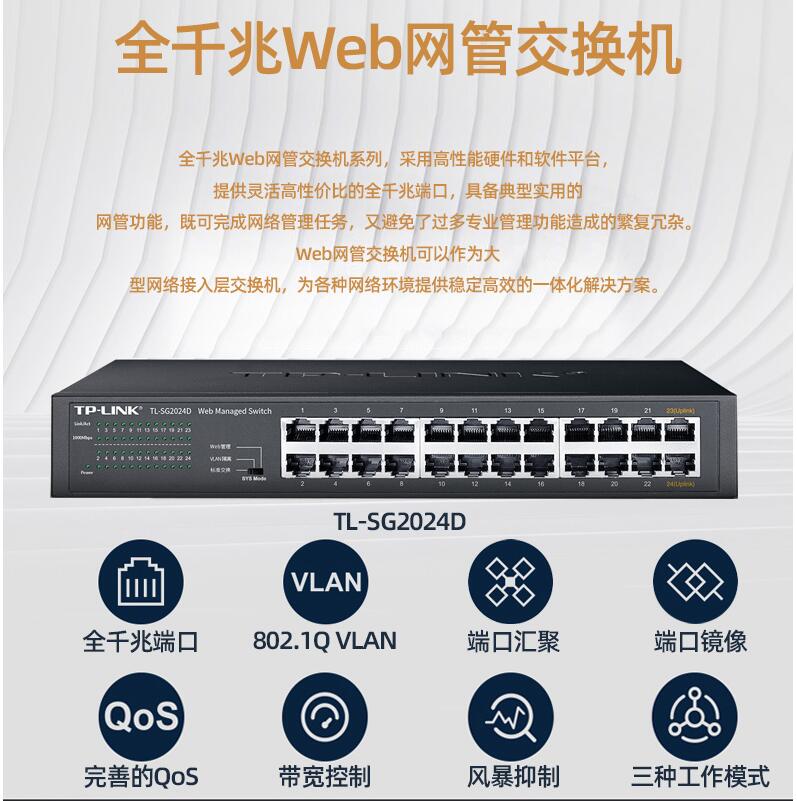 tplink24口千兆交換機(jī)16口48口百兆監(jiān)控專用網(wǎng)絡(luò)無線網(wǎng)線分流轉(zhuǎn)換交換器以太網(wǎng)企業(yè)web網(wǎng)管級(jí)VLAN匯聚SG2024D