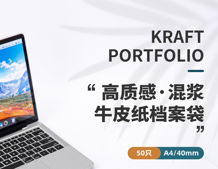 得力(deli)50只A4牛皮紙檔案袋 175g側(cè)寬4cm 標(biāo)書合同文件資料袋 33474